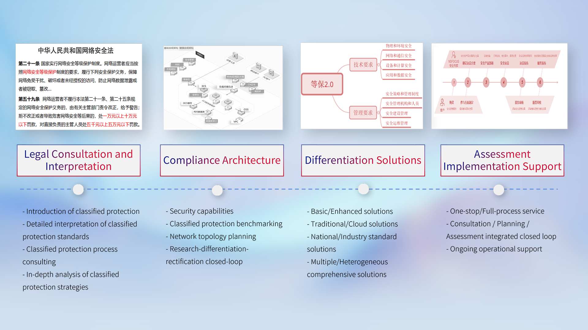 Based on customer industry characteristics, we provide tailored, one-stop security management services, combining professional security expertise with multi-vendor joint solutions. This approach helps customers fully detect and understand cybersecurity threats. Leveraging a service model that encompasses identification, detection, analysis, protection, monitoring, and response, we offer comprehensive support from solution consultation and integrated delivery to assessment, optimization, reinforcement, and ongoing maintenance. With our practical experience, we build robust security systems that enable customers to identify, combat, and manage threats effectively. This continuous effort strengthens security capabilities and ensures ongoing digital protection.