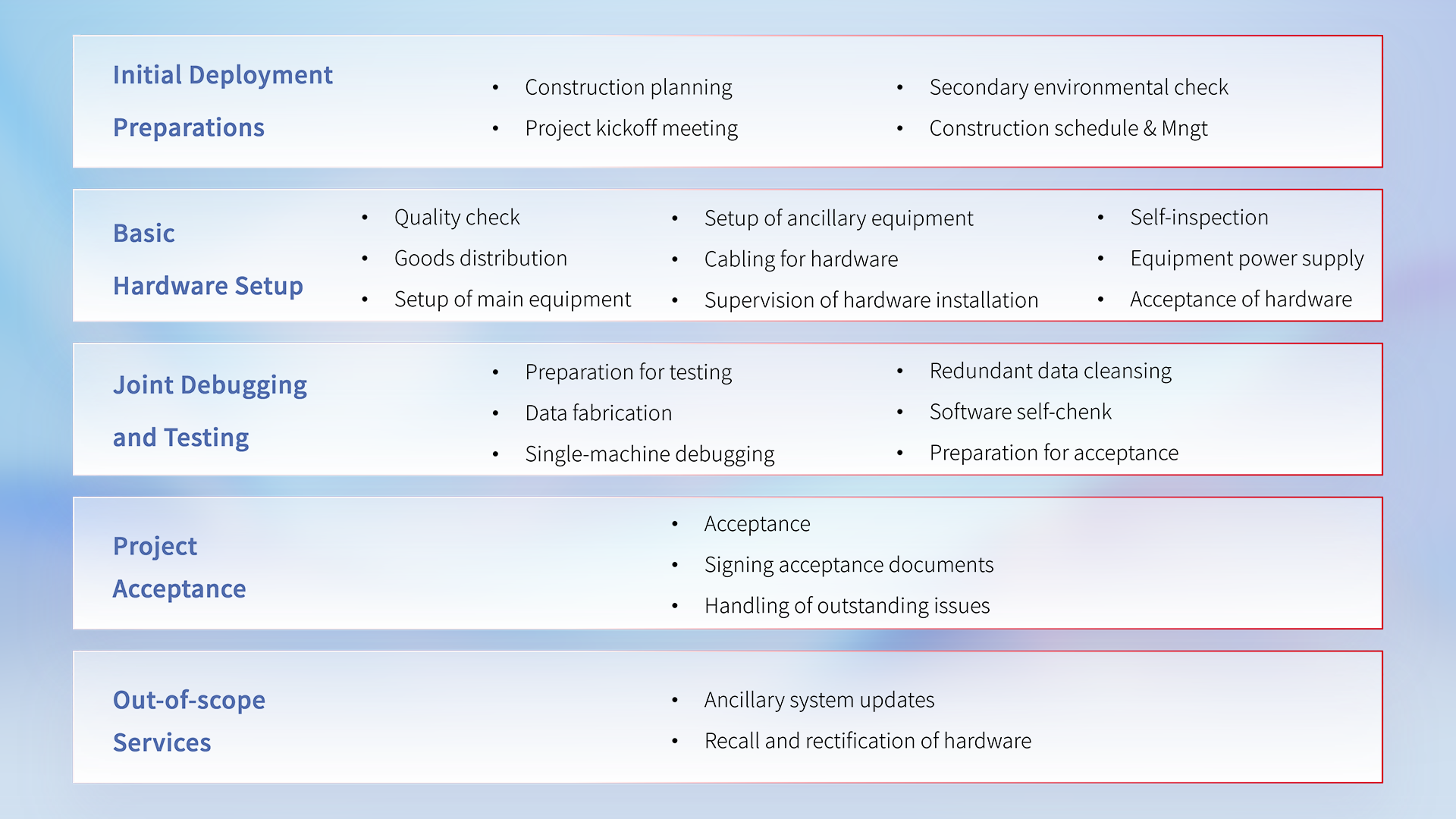 Cooperate with more than 500 IT manufacturers, as an original factory-level delivery and service center, providing high-standard services.